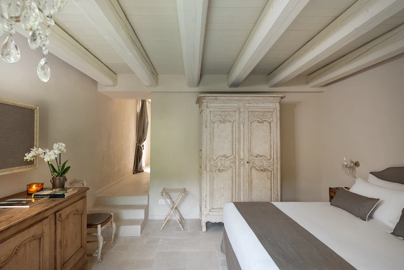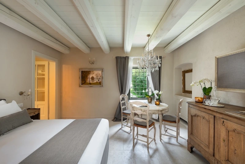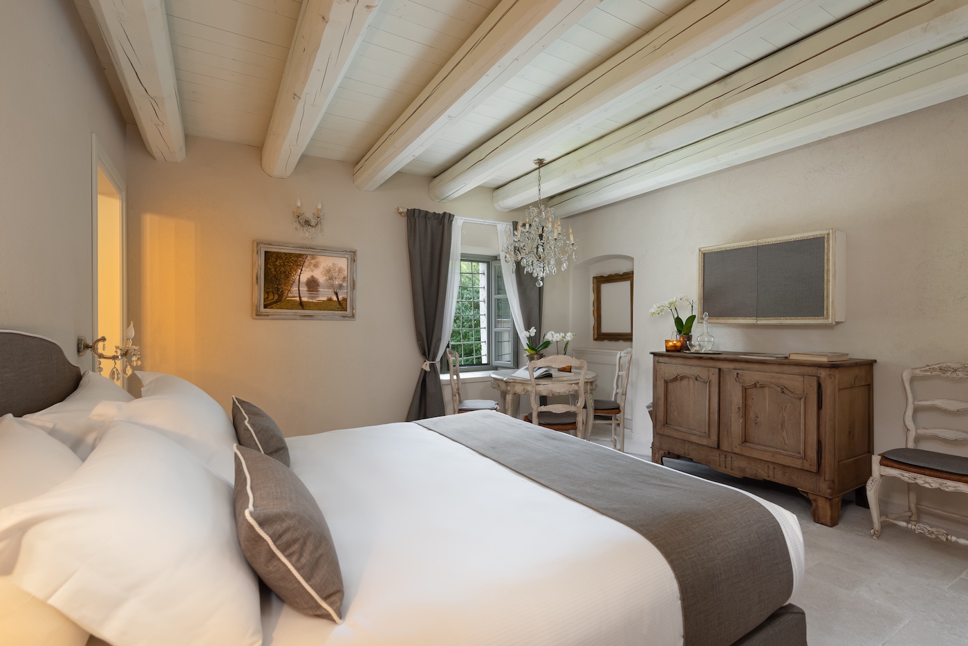 Habillée de tons verts chaleureux et baignée de lumière naturelle, Rosmarinus est une chambre qui accueille les hôtes dans un grand espace avec poutres apparentes et matériaux naturels racontant l’histoire du lieu. La vue sur la cour intérieure et le jardin offre des instants de détente et une beauté authentique.