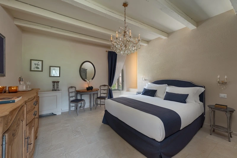 Avvolta da tonalità blu profonde e rilassanti, Eucalyptus è una stanza ampia e luminosa, dove il legno naturale degli arredi dialoga con i colori grigio pietra, creando un’atmosfera calda e accogliente.